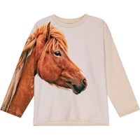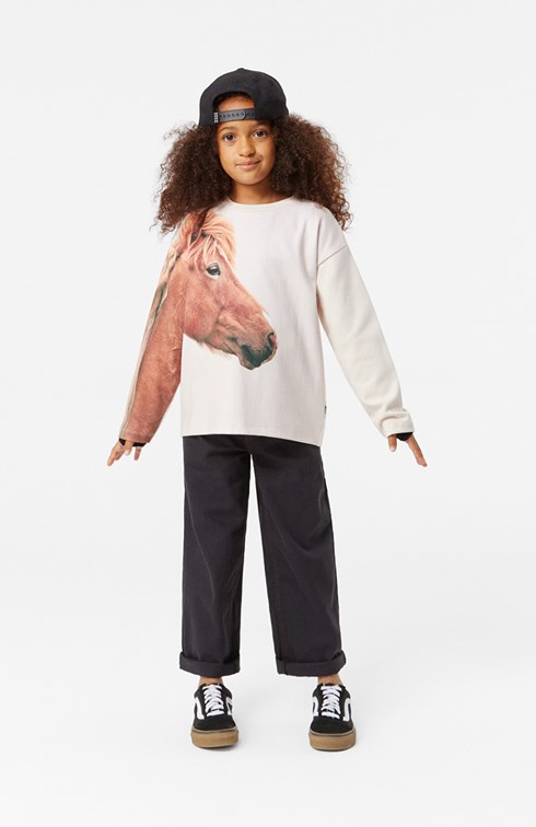 Sweatshirt i økologisk bomuld med rund halsudskæring med ribkant, lange ærmer og en almindelig pasform. På højre arm er der et flot print af en brun hest og dens manke, der følger ærmet op.