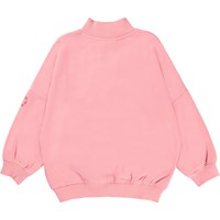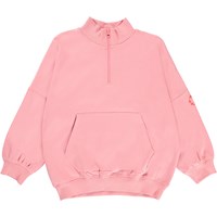 Mulle er en pink højhalset sweatshirt med lynlås i kraven. Blusen har kængurulomme på fronten. Kombiner sweatshirten med de matchende bukser.