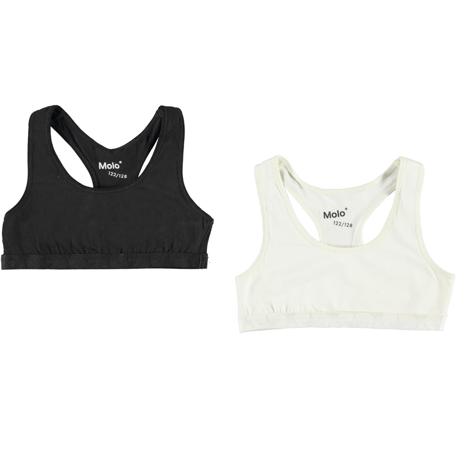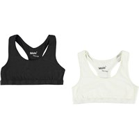 Sporty top med bryderryg og elastisk bund med stjerner, som sikrer at toppen sidder godt. Her er Jade i en 2-pack med en sort og hvid variant. Undertøjet kommer i en lille stod pose.