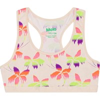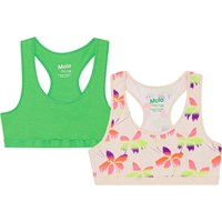 Sporty toppe i økologisk bomuld. Toppen har bryderryg og elastisk bund med stjerner, som sikrer en god pasform og er behagelig at have på. Toppen kommer i en 2-pack, den ene er råhvid med et print af palmer i friske farver og den anden grøn.