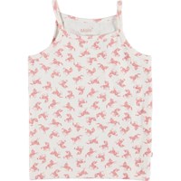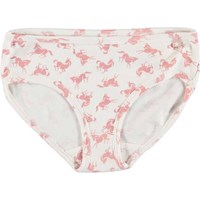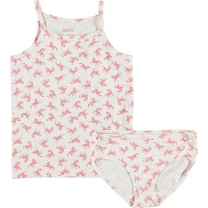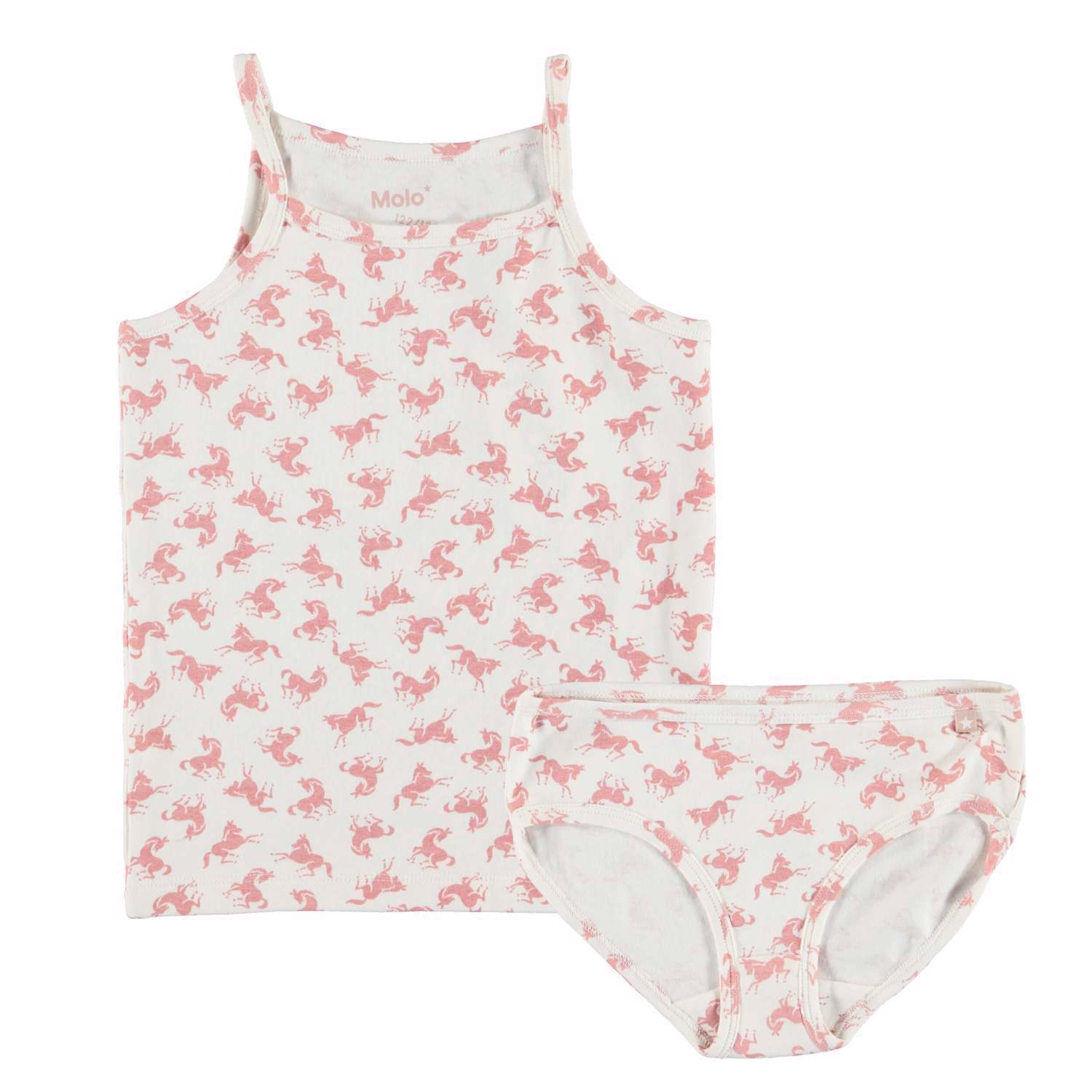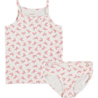 Hvidt undertøjssæt med print af rosa heste. Undertøjssættet indeholder en stroptop og et par underbukser med en bred pasform.