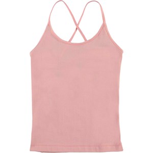 Janis er en rosa bomulds undertrøje med krydsede stropper på ryggen. Undertøjet kommer i en lille stof pose.