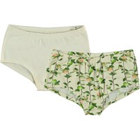 2-pack underbukser med en bred pasform. Det ene par i en cremefarvet, mens det andet par er i print med æbler og æblegrene.