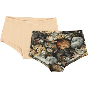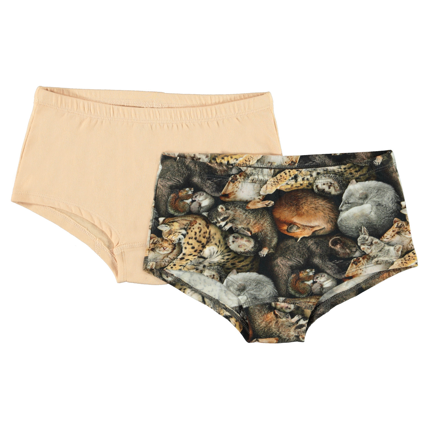 2-pack underbukser med en bred pasform. Det ene par i rosa, mens det andet par er med print af forskellige sovende dyr.