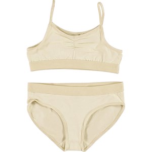 Jinny er et sæt undertøj i lysegul. Både overdel og underbukser har en bred sort elastisk kant, som sikrer en god pasform. Certificeret af Ecocert Greenlife, certifikationsnr. 197496.