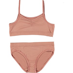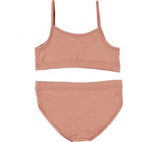 Jinny er et sæt undertøj i rosa, fremstillet i viskose jersey. Både overdel og underbukser har en bred elastisk kant, som sikrer en god pasform.