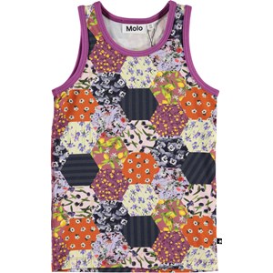 Molo's klassiske undertrøje i patchwork print med farverige blomster og citoner. Undertrøjen har lilla ribkanter.